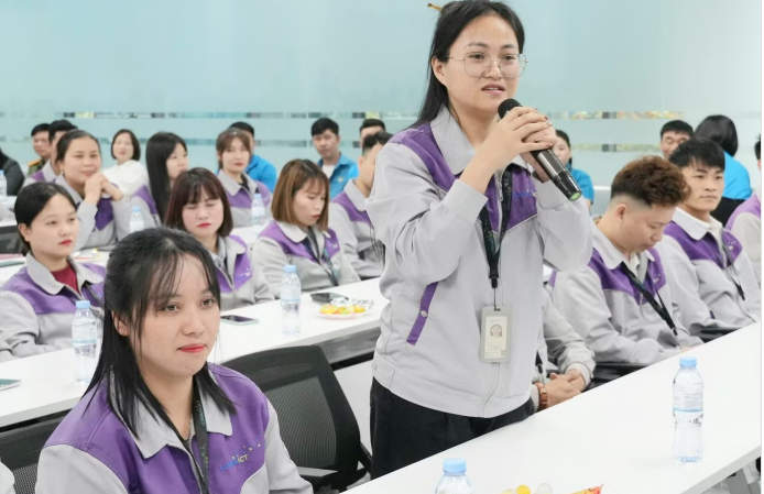Người lao động Công ty TNHH Luxshare-ICT chia sẻ tâm tư, nguyện vọng tại buổi làm với Tổng Liên đoàn Lao động Việt Nam.