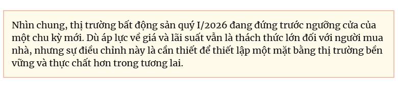 Cụ thể: Kết thúc quý I/2026, giá căn hộ sơ cấp lập đỉnh mới tại ba thị trường trọng điểm, trong khi lãi suất tăng và biến động kinh tế khiến thanh khoản giảm trên diện rộng.