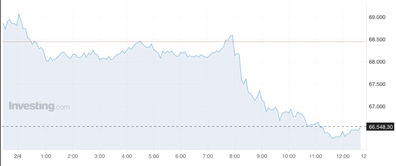 Bitcoin mở đầu tháng 4 ở mức quanh 68.000 USD. Tuy nhiên, giá của đồng tiền mã hóa này đã giảm về ngưỡng quanh 66.000 USD sau khi Tổng thống Donald Trump đưa ra thông điệp cứng rắn sáng 2/4 (theo giờ Hà Nội) về vấn đề chiến sự tại Iran.
