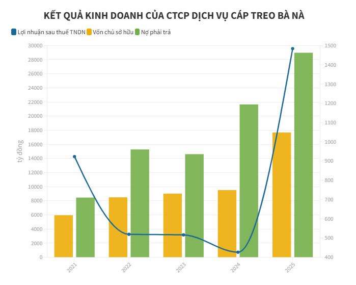 Cáp treo Bà Nà ghi nhận lợi nhuận sau thuế năm 2025 đạt 1.484,5 tỷ đồng, tăng gần 3,5 lần so với năm trước; đồng thời giảm mạnh dư nợ trái phiếu và cải thiện các chỉ số tài chính.