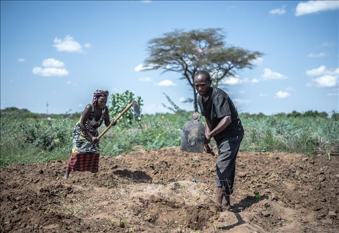 Người dân cuốc đất để trồng trọt tại Turkana, Kenya. Ảnh: THX/TTXVN
