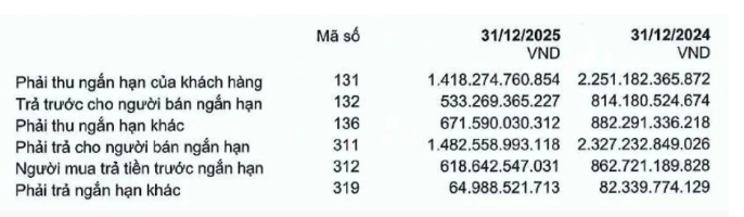 Tính đến thời điểm phát hành báo cáo kiểm toán hợp nhất 2025, Công ty TNHH Kiểm toán AFC Việt Nam chưa thể thu thập được đầy đủ thư xác nhận về các khoản phải thu và nợ phải trả tại ngày 31/12/2025 lên đến 4.787 tỷ đồng.