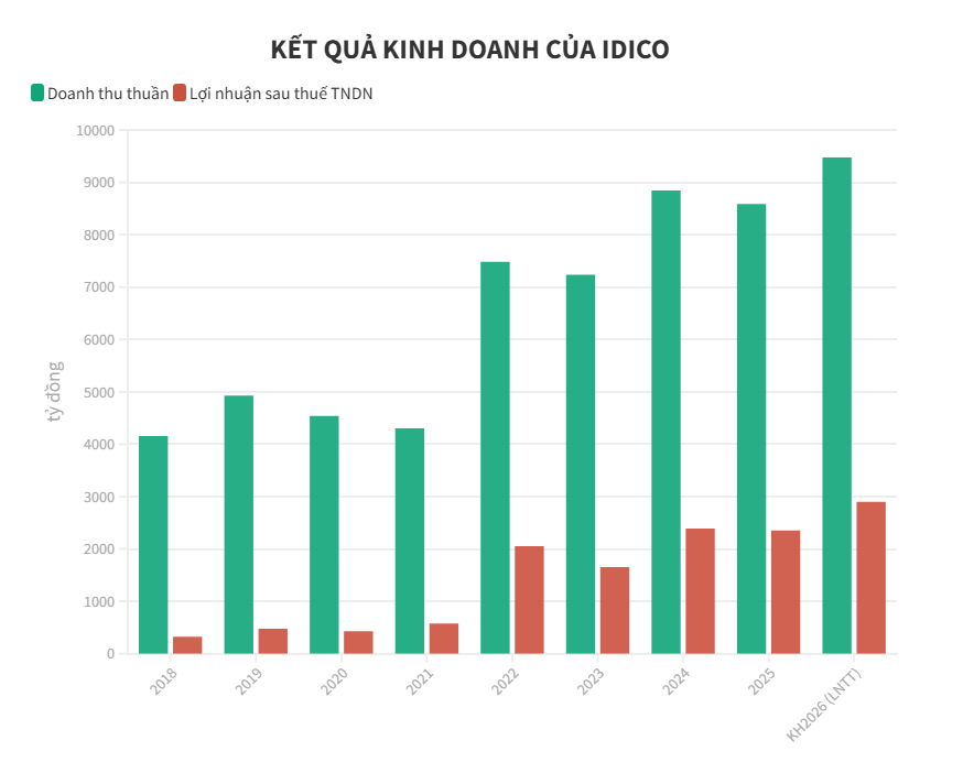Kết thúc năm 2025, IDICO ghi nhận doanh thu thuần hơn 8.588 tỷ đồng và lợi nhuận ròng gần 1.932 tỷ đồng, cùng giảm nhẹ khoảng 3% so với năm trước nhưng đều vượt kế hoạch đề ra.