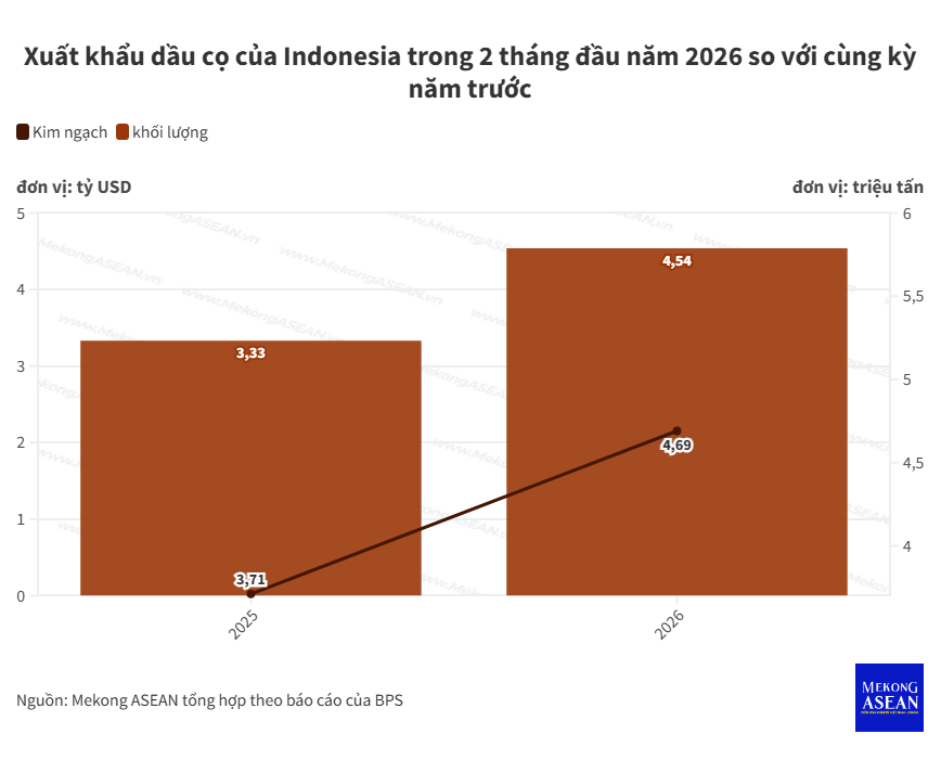 "Sự bứt phá mạnh mẽ của ngành dầu cọ đóng vai trò then chốt giúp Indonesia duy trì mạch thặng dư thương mại 70 tháng liên tiếp, đưa tổng mức xuất siêu của tháng 2/2026 lên 1,27 tỷ USD, phục hồi ấn tượng từ mức 950 triệu USD của tháng 1/2026," Jakarta Globe dẫn lời phát biểu ông Ateng Hartono trong một cuộc họp báo hôm 1/4.
