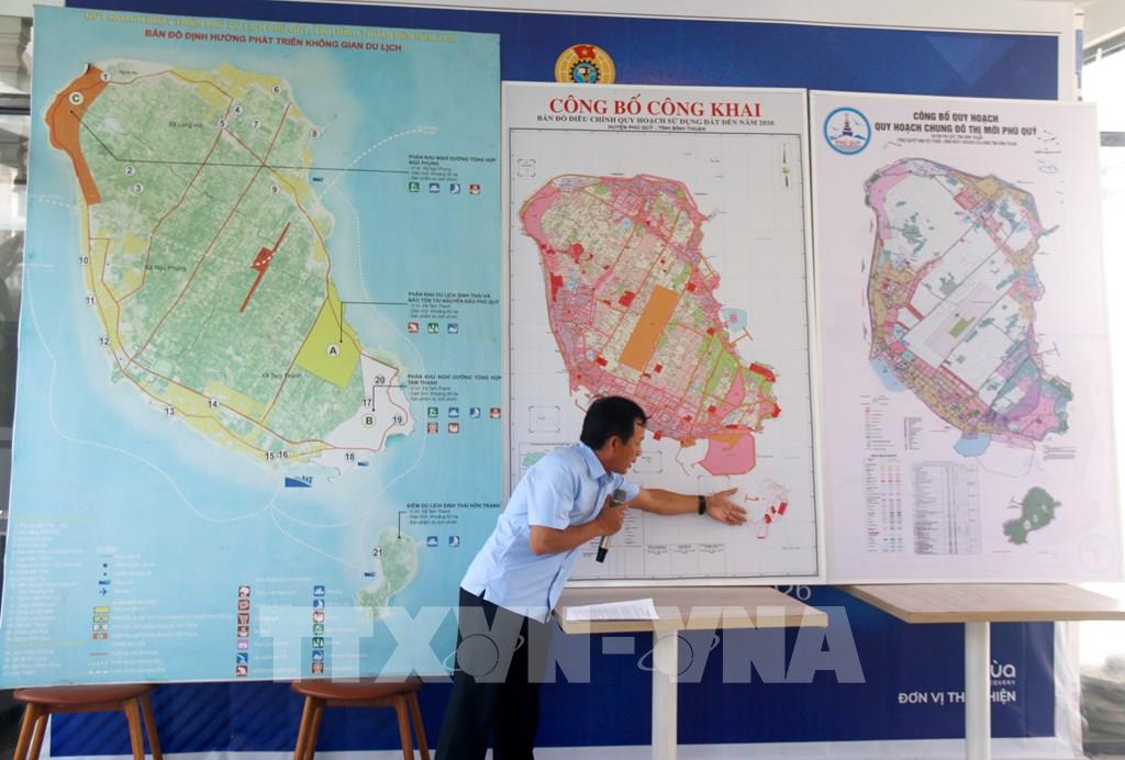 Ông Lê Hồng Lợi, Chủ tịch UBND Phú Quý giới thiệu quy hoạch phát triển kinh tế tại đặc khu. Ảnh: Nguyễn Thanh - TTXVN