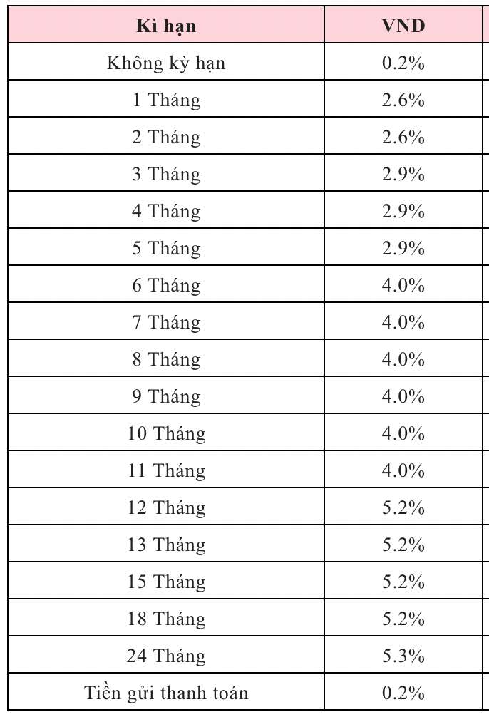 Khách hàng gửi tiền không kỳ hạn và tiền gửi thanh toán sẽ nhận lãi suất ở mức 0,2%/năm.