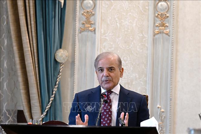 Thủ tướng Pakistan Shehbaz Sharif phát biểu tại Islamabad. Ảnh: THX/TTXVN