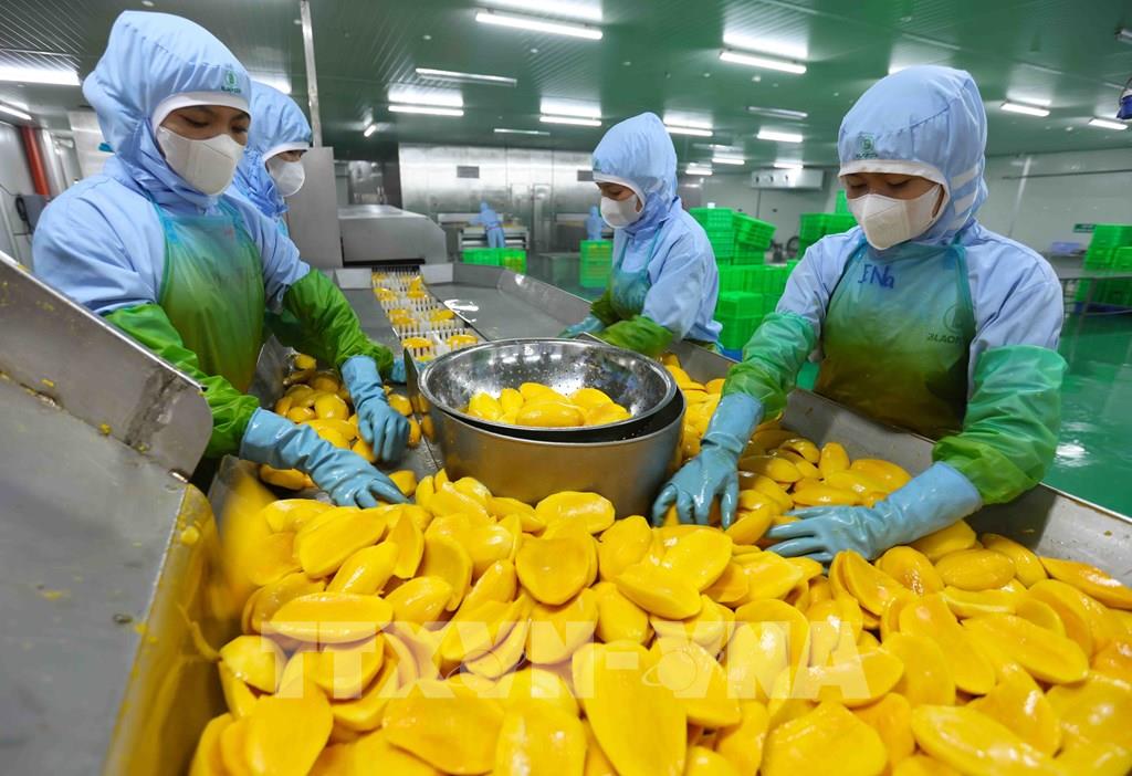 Chế biến sản phẩm xoài xuất khẩu sang. Ảnh: Vũ Sinh - TTXVN