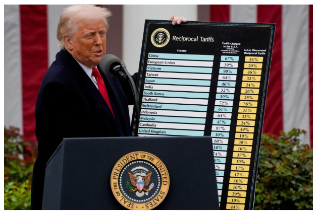 Ông Trump công bố thuế quan đối ứng ngày 2/4/2025. Ảnh: Bloomberg