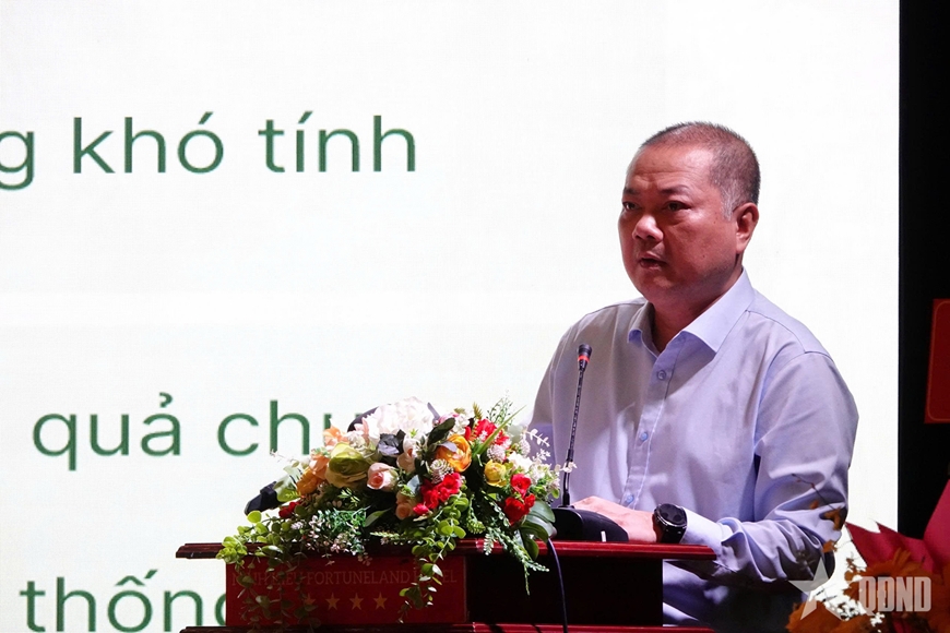 Ông Nguyễn Anh Sơn, Cục trưởng Cục Xuất nhập khẩu (Bộ Công Thương) trình bày tham luận tại hội nghị.
