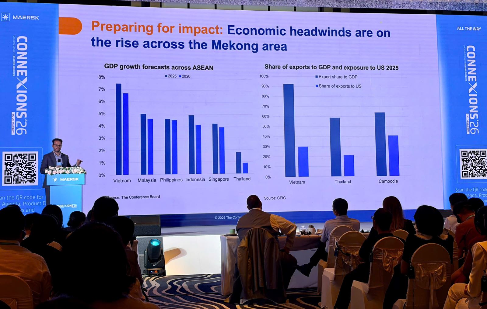 Theo đó, tại Hội nghị CONNEXIONS 2026 do A.P. Moller - Maersk tổ chức đã quy tụ nhiều lãnh đạo cấp cao của tập đoàn tại khu vực Mekong và Greater China cùng cộng đồng doanh nghiệp nhằm phân tích những động lực mới đang định hình thương mại, logistics và chuỗi cung ứng trong khu vực.