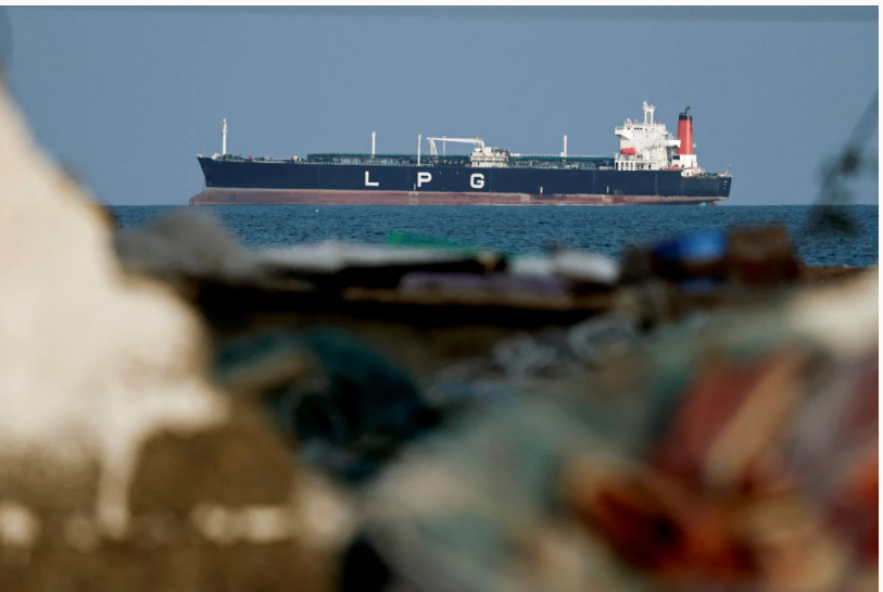 Một tàu chở khí đốt ở eo biển Hormuz ở Shinas, Oman. Ảnh: Reuters