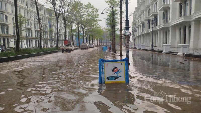 Ghi nhận của phóng viên Báo Công Thương sáng 30/3, trận mưa lớn kéo dài khoảng 2 tiếng ở Thủ đô Hà Nội đã khiến hàng loạt tuyến đường nội khu, thuộc Khu đô thị Ciputra (phường Phú Thượng) bị ngập sâu. Nhiều đoạn đường trong “khu nhà giàu” này biến thành “sông”, phương tiện di chuyển vô cùng khó khăn.