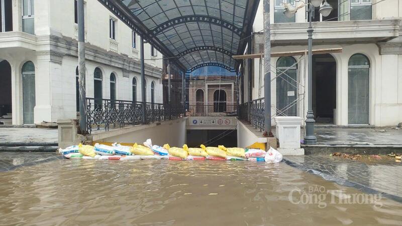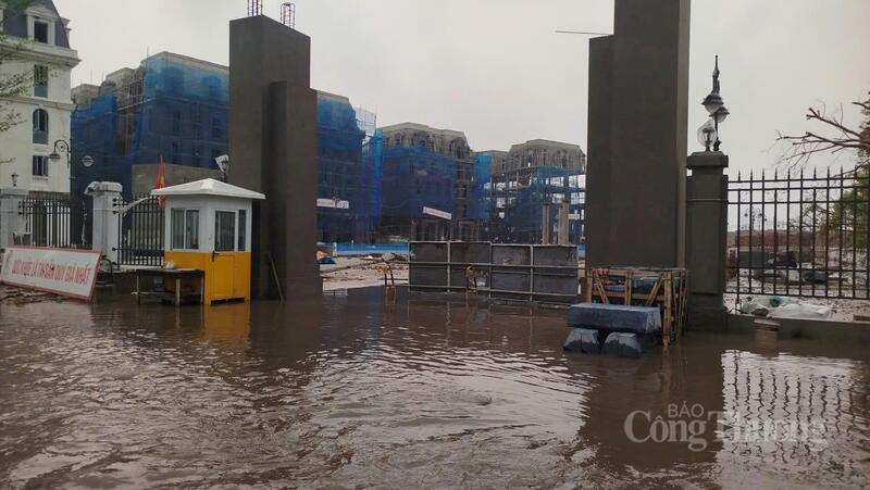 Công trình đang thi công cũng bị đình trệ do ngập nước.