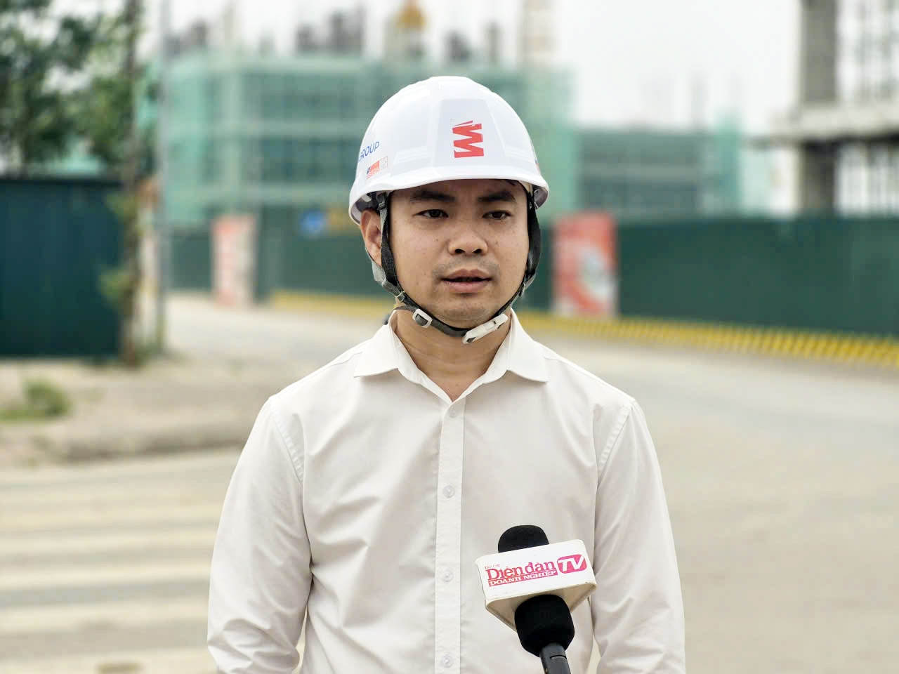 Ông Nguyễn Trường Thăng, Phó Tổng Giám đốc công ty cổ phần Đầu tư xuất nhập khẩu Thăng Long, chủ đầu tư dự án nhà ở xã hội khu A, B thuộc khu dân cư phường Vũ Phúc, tỉnh Hưng Yên trao đổi với phóng viên Diễn đàn Doanh nghiệp
